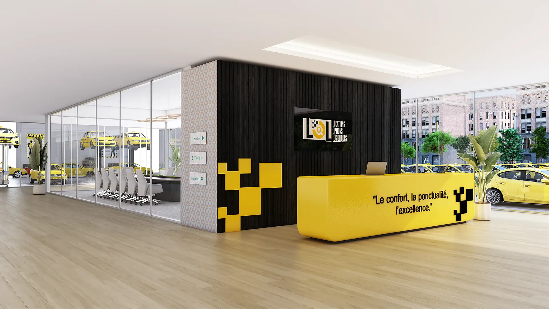 I partnered with a major metropolitan taxi service to deliver photorealistic commercial 3D renderings for their new combined warehouse and administrative office facility.