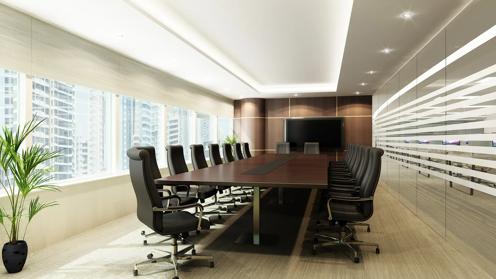 - Executive Zoning: Using composition and refined detailing to distinguish the exclusive, private nature of the CEO/Director’s office (soft seating, personal desk) from the collaborative, professional energy of the meeting and work areas.